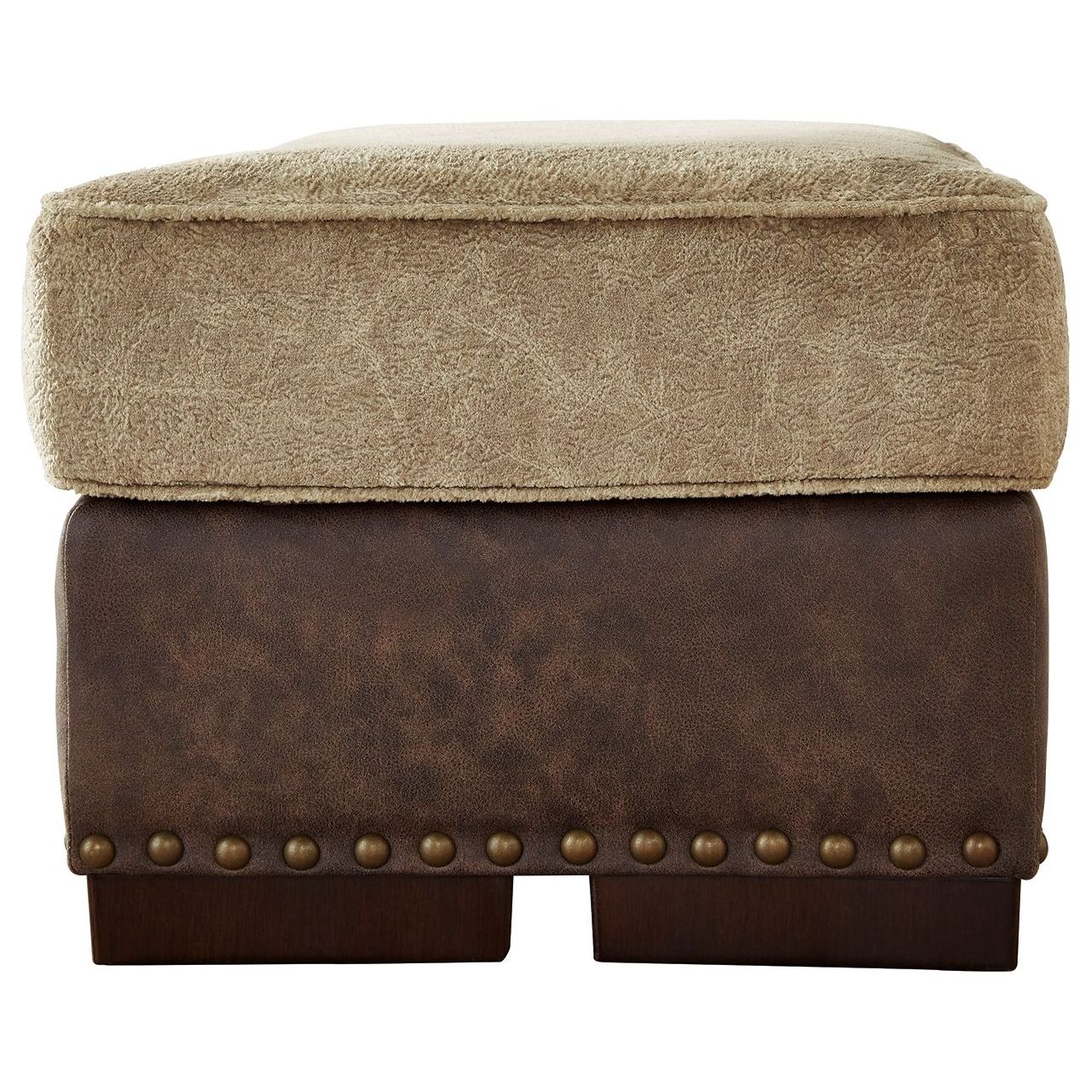 Punctuated by a subtle band of nailhead trim, the cool, contemporary style of this ottoman is perfect for those who love the look of leather. Two textural tones provide twice the style and comfort—and incorporate an added layer of visual interest.
