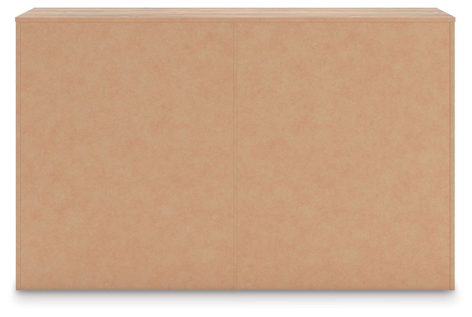 The natural wood tones and clean lines of this dresser echo your easygoing style sensibilities. With a warm finish and replicated oak grain, its carefree character lightens up your bedroom. Curved inner corner details soften the look, while sleek bronze-tone hardware modernizes the feel.
