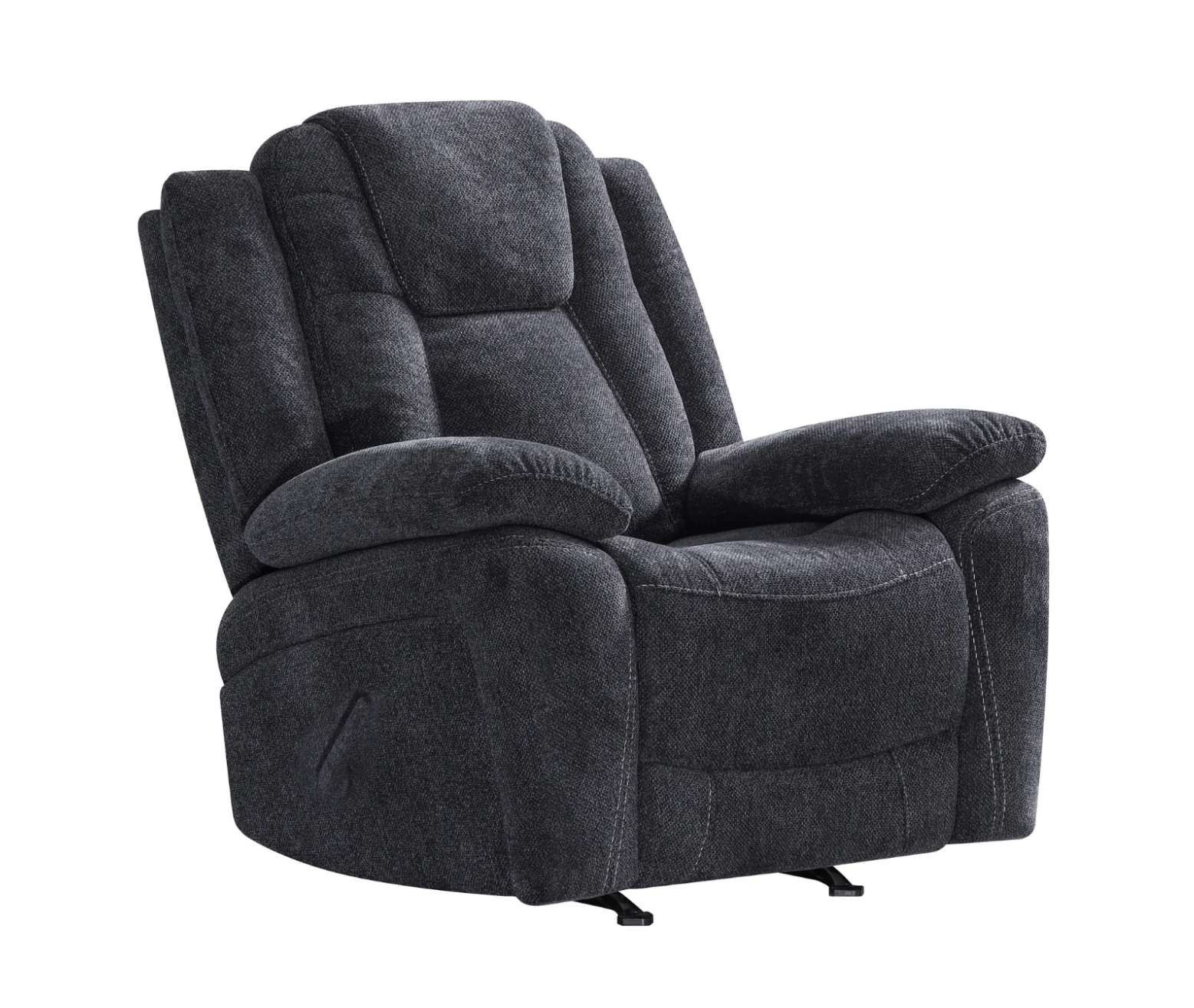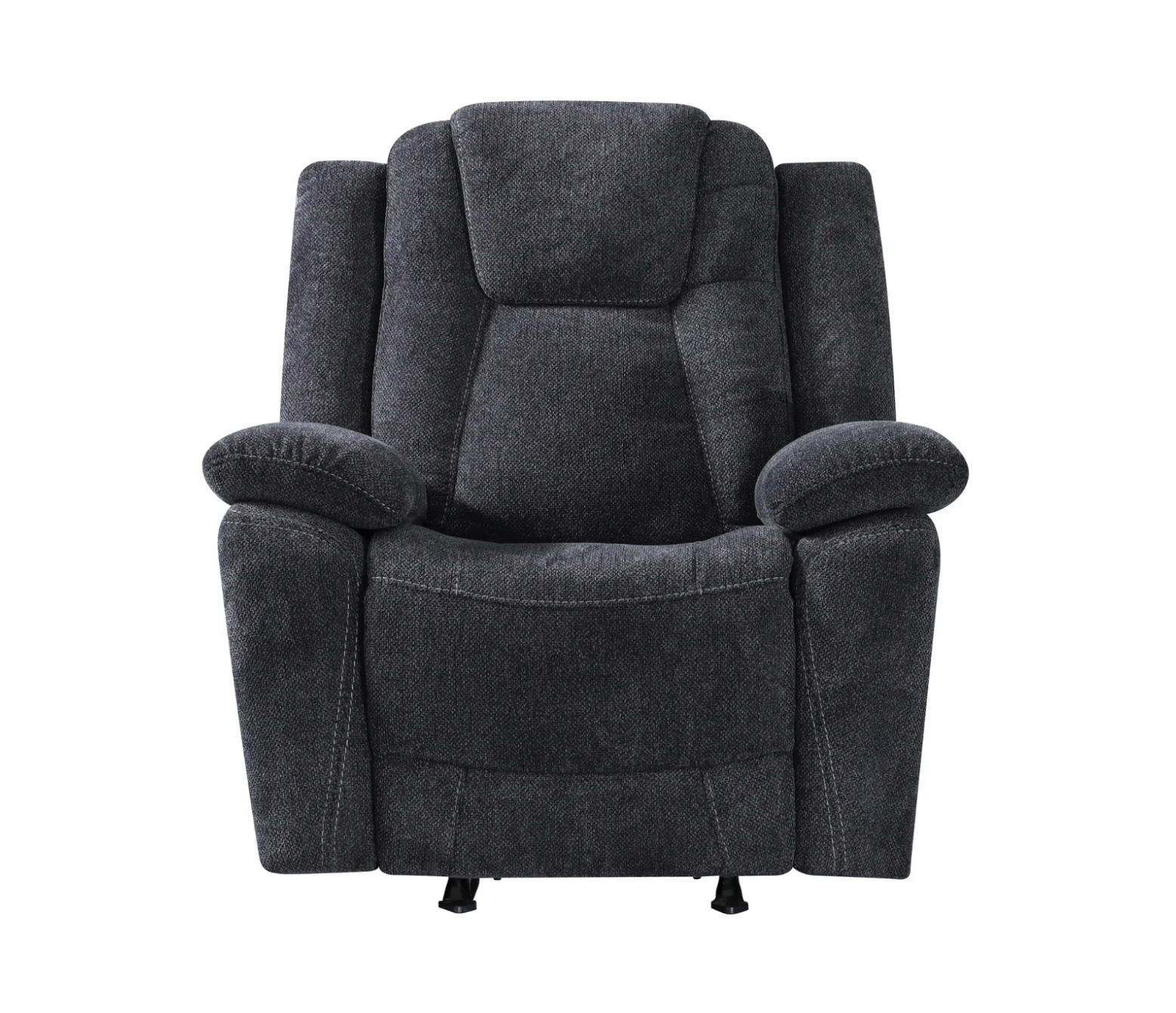 Unwind in the perfect balance of comfort and charm with the Ruth Rocker Recliner. Draped in a soft denim-inspired graphite fabric, this chair brings a relaxed yet refined vibe to any room. Detailed with contrast stitching and designed with a smooth rocking recline, it’s a cozy retreat you’ll never want to leave.